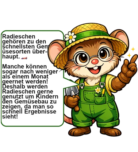 Radieschen gehören zu den schnellsten und einfachsten Gemüsepflanzen im Garten. Sie sind besonders bei Einsteigern beliebt, weil sie wenig Pflege benötigen und sehr schnell wachsen. Botanisch gehört das Radieschen zur Art Raphanus sativus var. sativus und zur Familie der Kreuzblütler. Es ist eng verwandt mit Rettich, unterscheidet sich jedoch durch seine kleinere, meist runde Knolle und den milderen Geschmack.