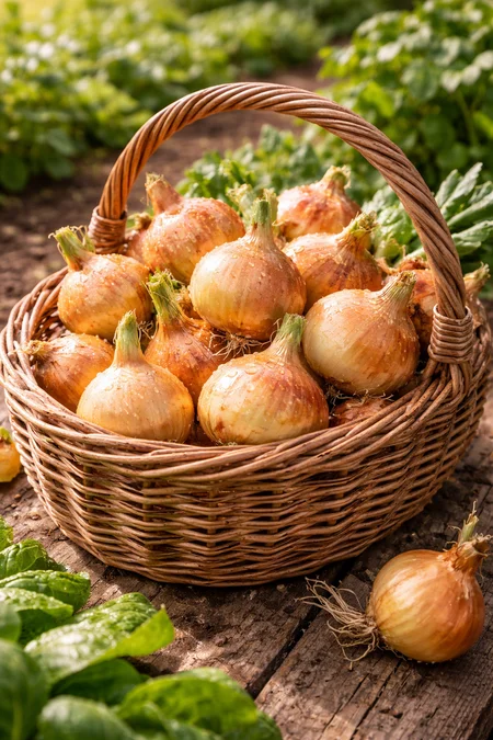 Zwiebeln gibt es in vielen Sorten: Frühlingszwiebeln für die schnelle Ernte, Lagerzwiebeln für die langfristige Aufbewahrung und Rote Zwiebeln für intensive Farbe und Geschmack. Sie sind zudem wichtige Mischkulturpartner, da sie viele Gemüsepflanzen durch ihren Geruch vor Schädlingen schützen können.